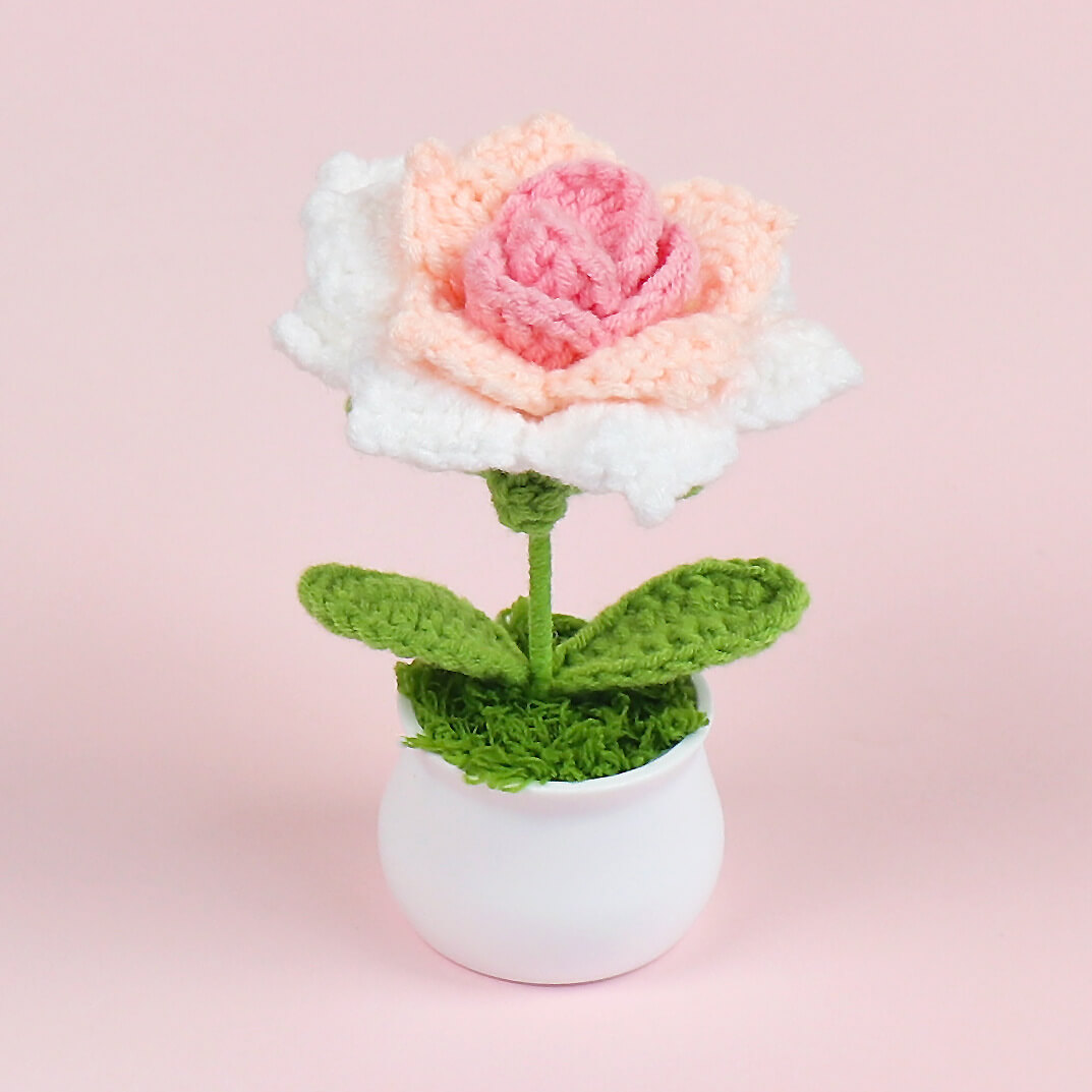 Hand woven potted rose with pointed corners